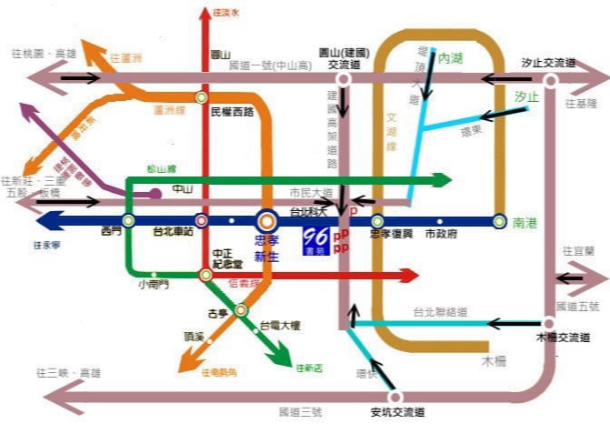 2.搭乘高鐵或火車:於台北車站下後,不需出台北車站,直接搭乘捷運板南線往南港方向,搭乘兩站,經忠孝新生站3號出口,在忠孝東路上往東(建國南路)步行約3~5分鐘即可到達。
